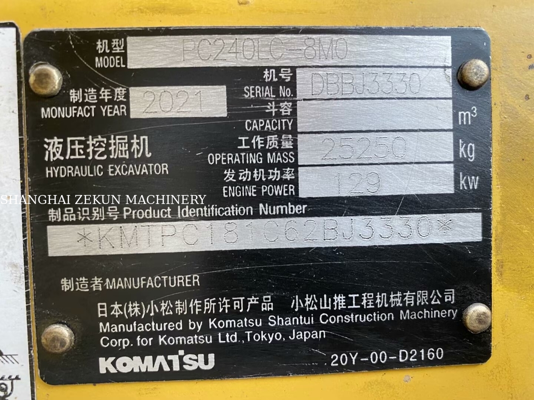The 2021 Komatsu PC240LC-8M0 is a high-performance 24-ton hydraulic excavator designed for heavy-duty excavation, earthmoving, and site preparation. Known for its durability and fuel economy, this unit is in excellent condition with just 4636 hours of use.